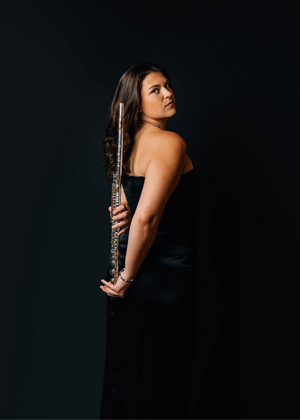 Jillian Russell is a senior flutist at the University of Arkansas, where she studies under Dr. Cristina Ballatori. She will graduate in May 2026 with a Bachelor of Music in Instrumental Music Education. Jillian began her undergraduate studies at the University of Missouri–Columbia, studying with Professor Alice K. Dade. During her three semesters there, she was a member of the Wind Ensemble directed by Dr. Brian A. Silvey, serving as principal flute for two semesters. While at Mizzou, she won the 2022–23 Missouri MTNA Young Artist Performance Competition and was named First Alternate at the West Central Division MTNA Young Artist Competition.